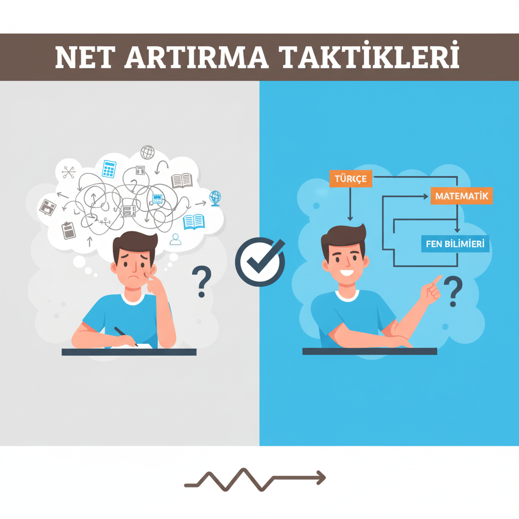 Net artırma, sadece çok çalışmakla değil, doğru stratejiyle mümkündür. Bir deneme çözmeye başlamadan önce kendinize en uygun başlangıç sırasını belirleyin, deneme sonrasında ise detaylı hata analizi yaparak boşluklarınızı kapatın.