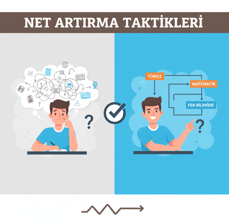 Net artırmak; daha fazla ders çalışmaktan çok, daha akıllı çözmekle ilgilidir. Aynı bilgiyle bile doğru stratejiler kullanıldığında netler ciddi şekilde yükseltilebilir.